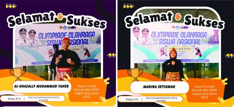 Berapa kali dilihat: 458 Prestasi gemilang kembali ditorehkan oleh siswa siswi SMA Muhammadiyah Kupang. Dalam event O2SN 2025 (Olimpiade Olahraga Siswa Nasional) tingkat kota Kupang telah didapatkan hasil juara 1 tunggal putra dan juara 2 tunggal putri cabang olahraga Pencak Silat. Dalam kesempatan tersebut sekolah mengirimkan 2 siswa atas nama … Continue reading Dari Matras Menuju ke Panggung Prestasi